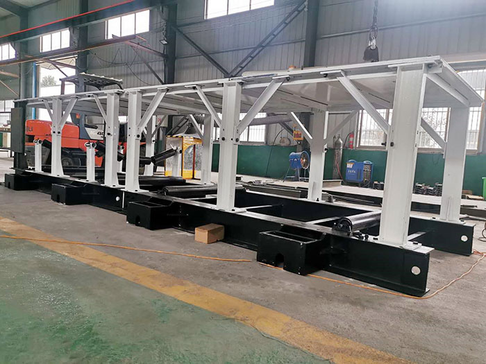 自移式设备列车组主要由车体、行走油缸、制动装置、操纵阀组等组成,主要适用于综采工作面轨道巷,用于安装移动变压站、综保开关、乳化液泵站、液箱、工具箱、备件箱、存放电缆胶管等,并能拖动其随着工作面的推移而移动。自移式设备列车组制动装置采用弹簧、液压双保险设计,具备高可靠性。